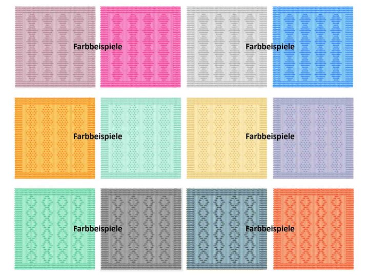 Du bekommst 1 pdf-Datei mit 10 Seiten, für jedes Tuch 3 Seiten und bisschen Erklärung vorweg.