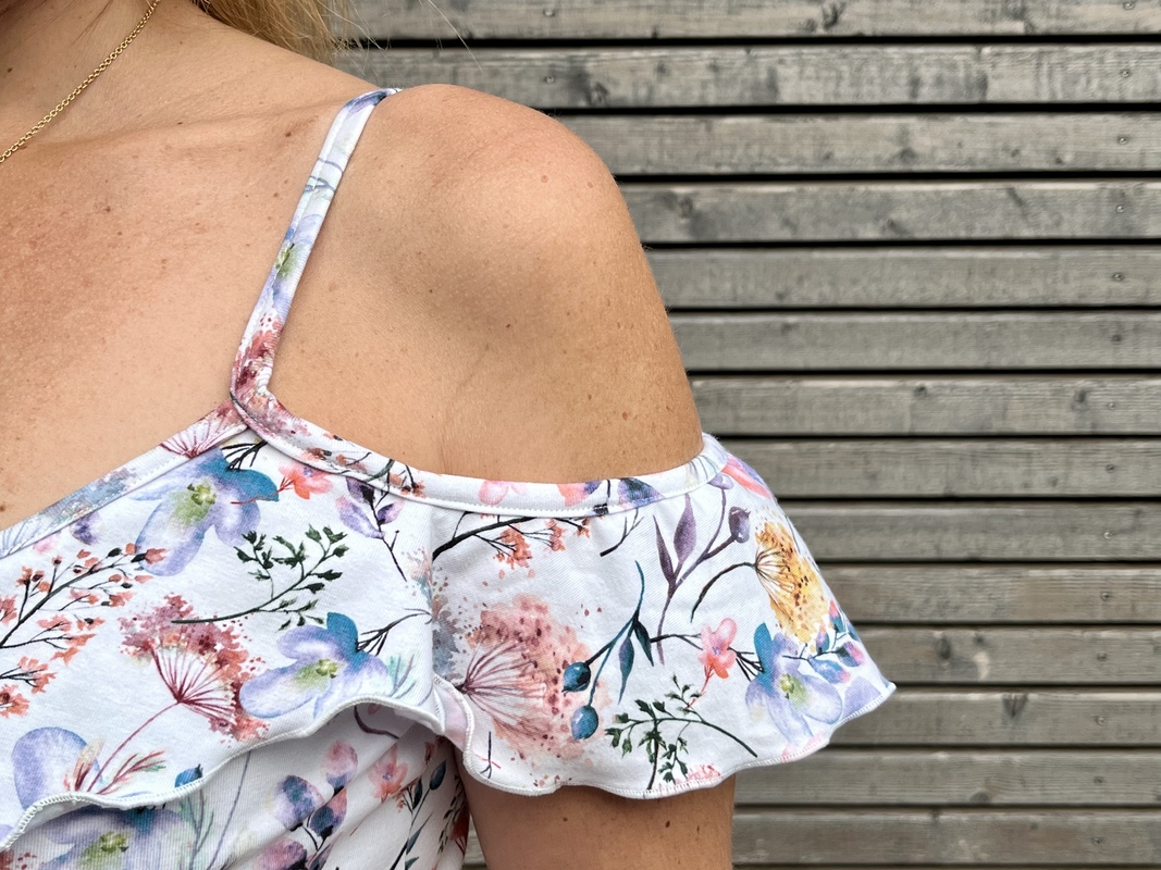 Zusammengefasst: Dieser Schnitt bietet dir eine Volantshirt oder ein Volantkleid mit Seitenschlitzen, sowie zwei verschiedene Trägerarten.