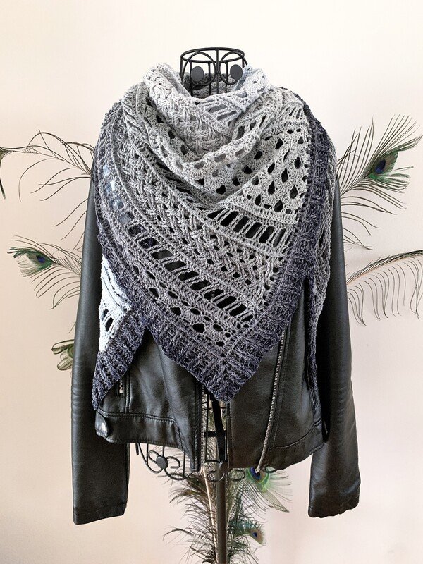 Die Anleitung beinhaltet noch weitere 20 Reihen (geschrieben und als Häkelschrift), falls du das Tuch größer machen möchtest. Die Größe kann durch andere Wolle oder andere Häkelnadelstärke leicht variieren.