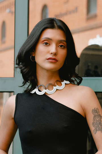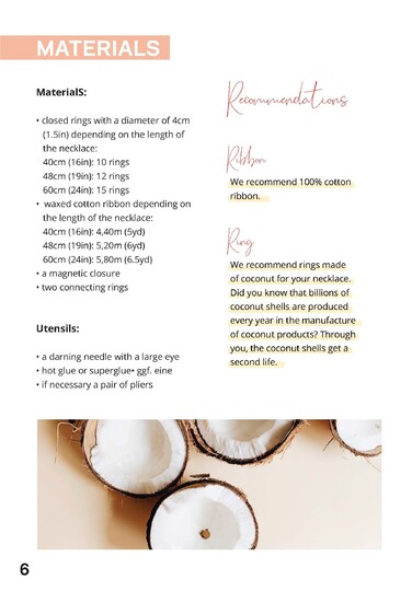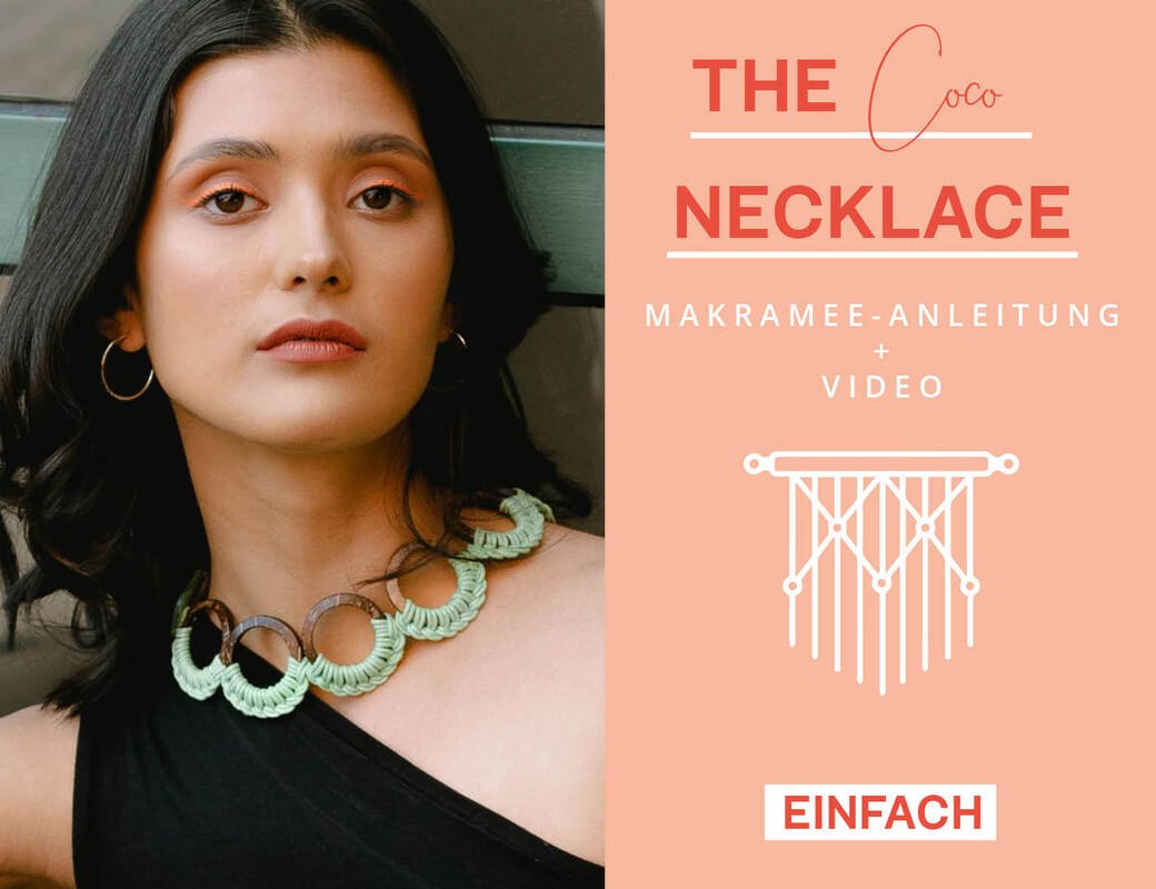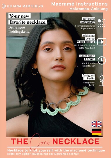 Weiße Strände, grüne Palmen – daran denken wir, wenn wir die The Coco Necklace sehen. Die Ringe aus Kokosnuss und die wunderschöne Makrameetechnik machen sie zu einem echten Statement-Piece. Zu der Kette gibt es eine passendes Anleitung für Ohrringe.
