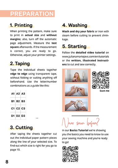 Schnittmuster zum Handnähen oder Nähen mit der Nähmaschine. Zu jedem Schnittmuster gibt es eine kostenlose Video-Anleitung auf unserem YouTube-Kanal JULIANA MARTEJEVS - Das DIY-Modelabel oder unserer Website (s. Profil).