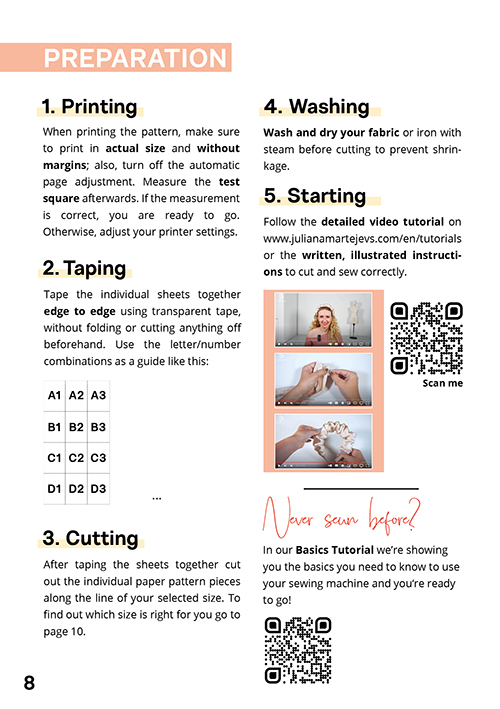 • Schnittmuster inkl. aller Nahtzugaben als PDF in A4 zum Download