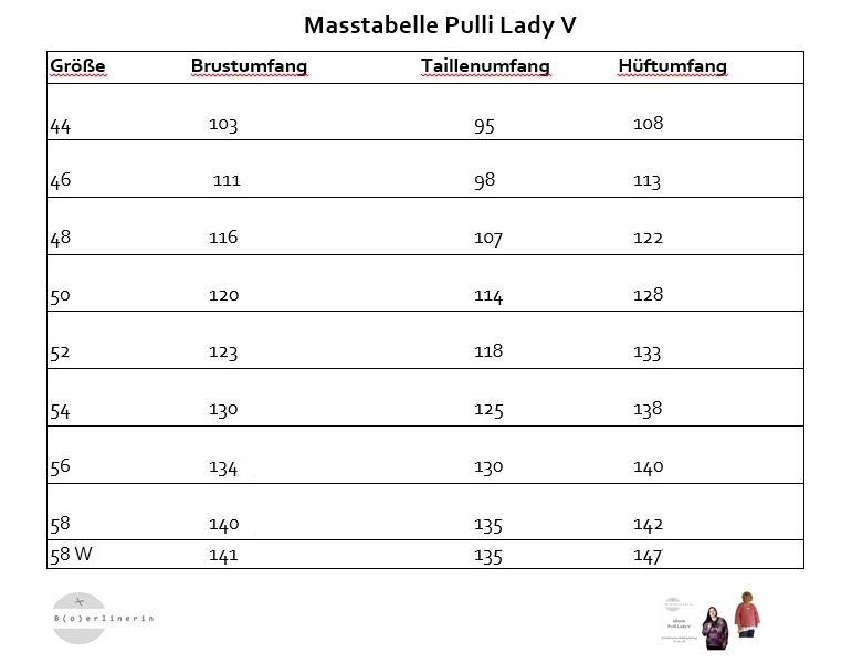 Die Maßtabelle könnt ihr in der Vorschau oder bei den Fotos hier einsehen.