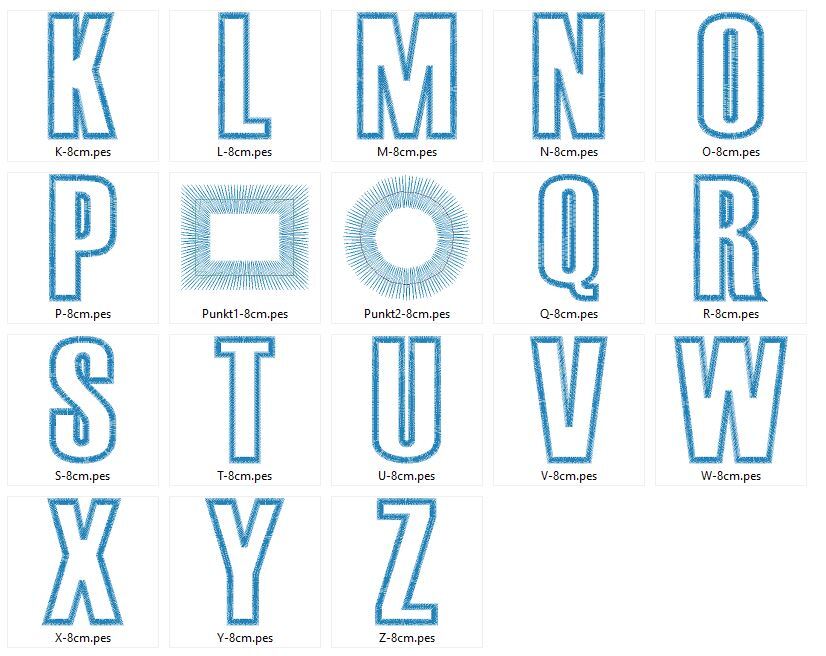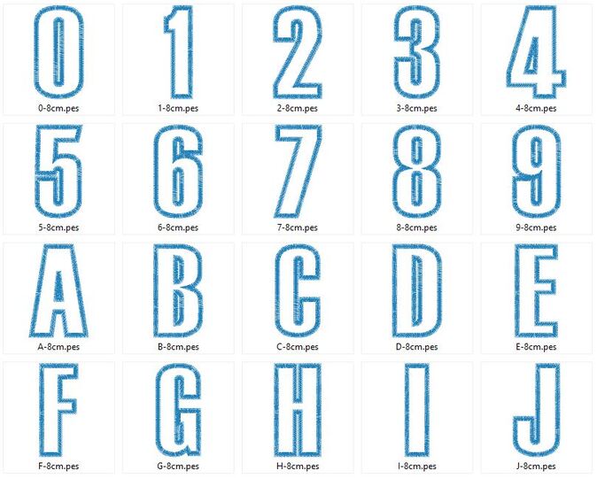 Stickdatei Buchstaben und Zahlen in 8cm (das Q ist 9cm hoch) Höhe für Stoffapplikationen