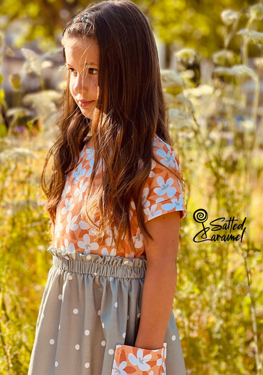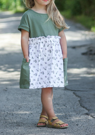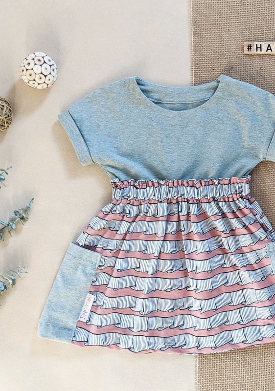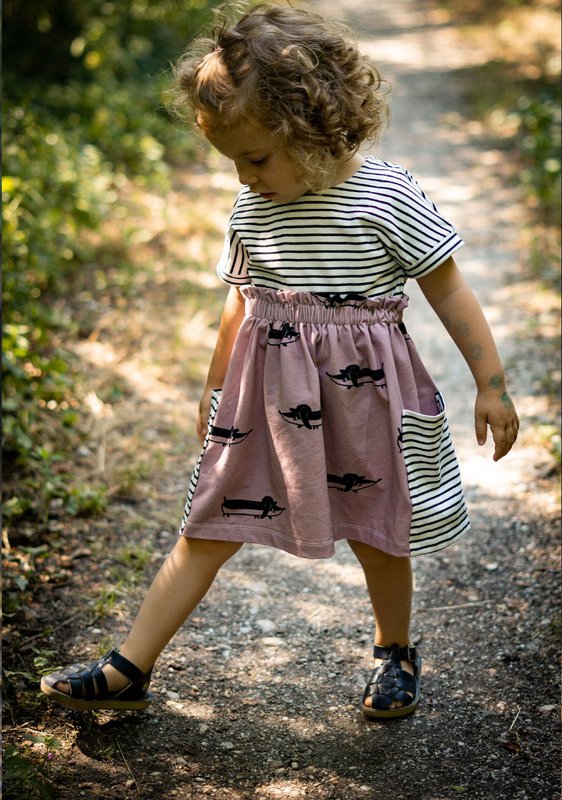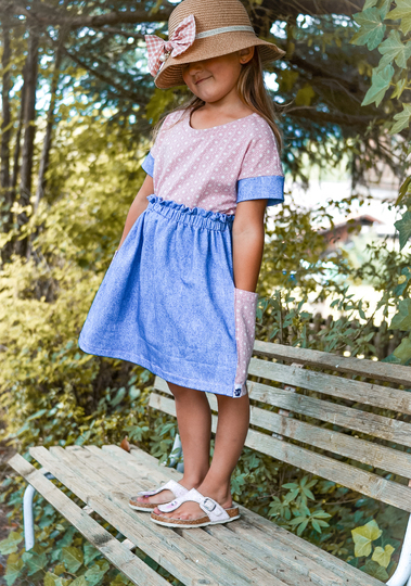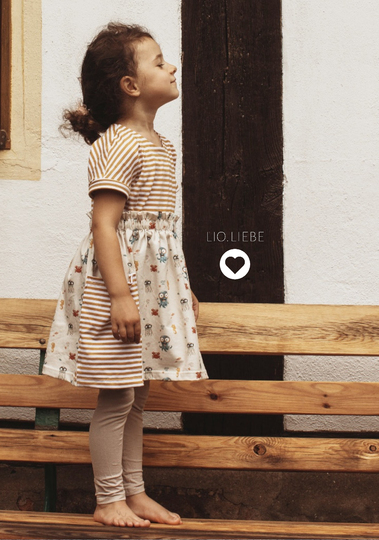Hanni ist ein Schnittmuster für ein sommerliches, verspieltes Mädchen-Kleid. Der Mix aus sportlichem Look am Oberteil und mädchenhaft gerafftem Rock macht das Kleid unverwechselbar!