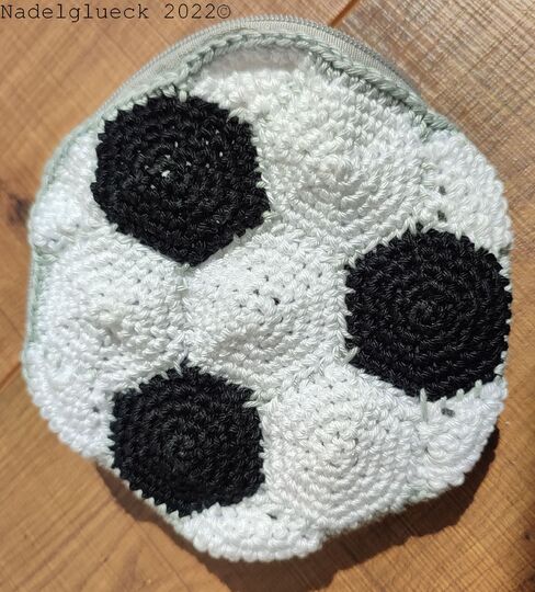 Du erhältst hier die Anleitung für ein gehäkeltes Fußball-Täschchen.