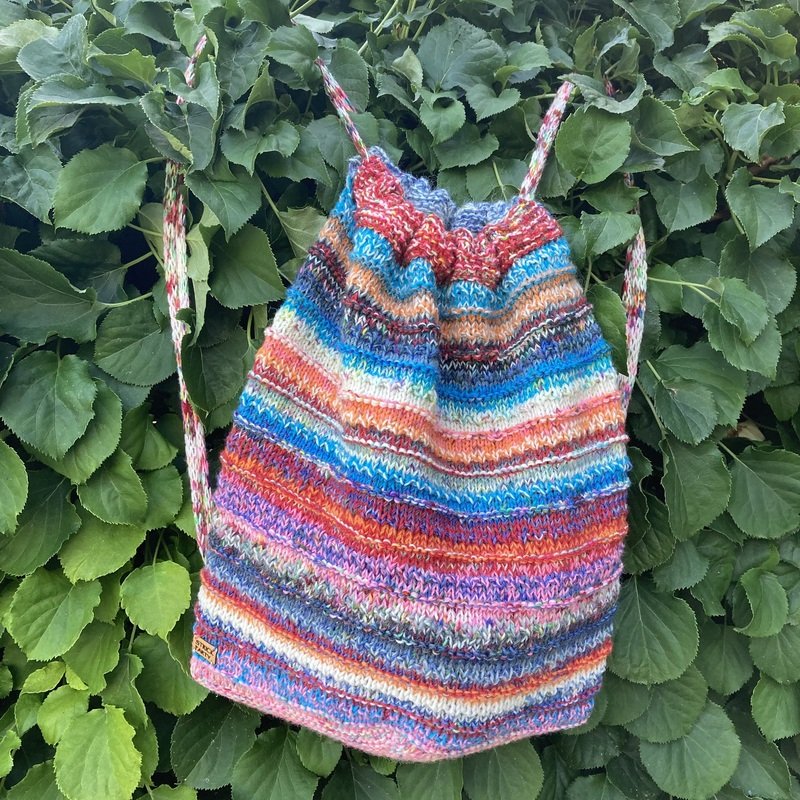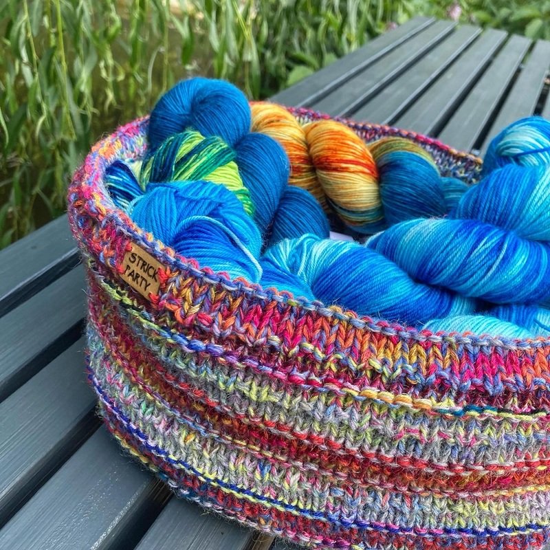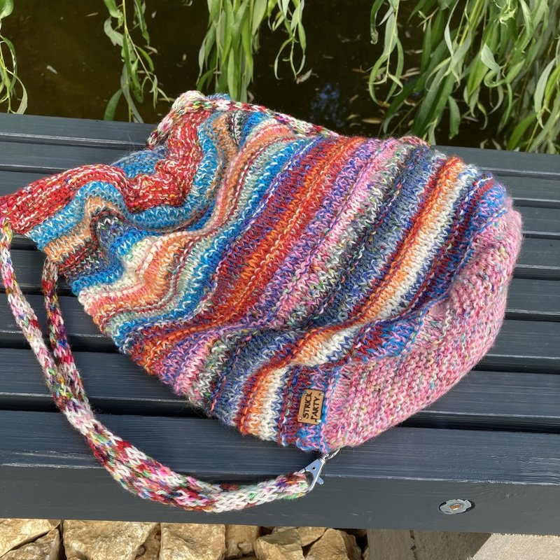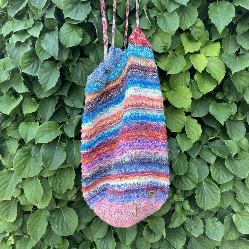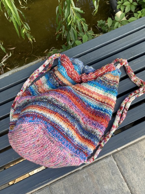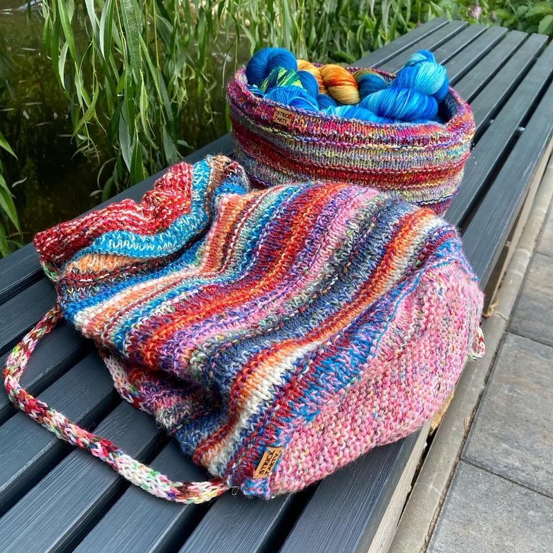 Ein bunter Rucksack oder eine Tasche oder ein Strickkorb… Du strickst ein Projekt und kannst es unterschiedlich nutzen.