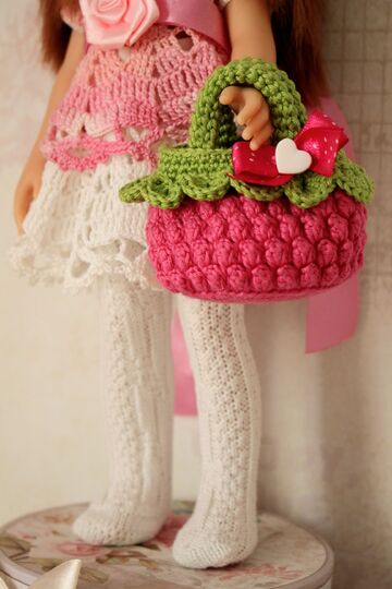 Puppen Himbeertasche. Sommerlich im Design. Der perfekte Begleiter für den Alltag und Ausflüge! Ein ideales Geschenk für die Tochter oder Enkelin.