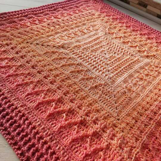 Hier erhaltet ihr eine Deckenanleitung meines Tuches Relief Rebell. Die Anleitung ist für eine quadratische Decke.
