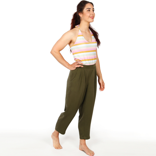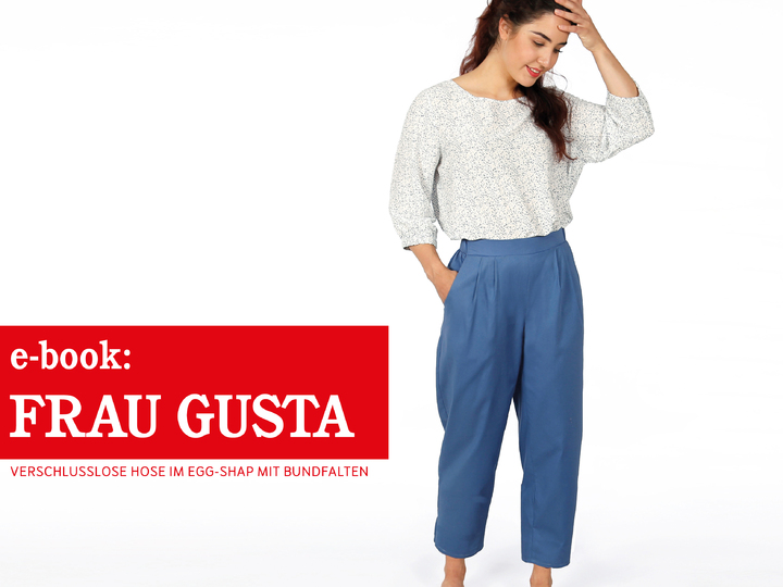 FRAU GUSTA ist eine locker und luftig fallende Hose im egg-shape. Zwei Bundfalten erzeugen zusätzliche Weite, die zum Saum hin schmaler wird. Der Gummibund liegt im Vorderteil glatt an und kräuselt sich erst ab den aberundeten Tascheneingriffen. Mit FRAU GUSTA hast Du eine moderne und doch bequeme Hose, die Dich überall hin begleiten wird!