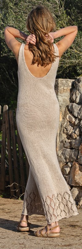 Das Maxikleid kann in den Größen 34/36, 38 und 40 gestrickt werden.