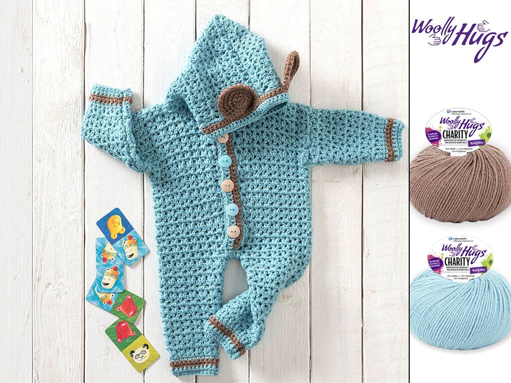 Gehäkelt wurde der Strampler aus der Woolly Hugs CHARITY. Die (natürlich mulesingfreie!) Qualität ist mit 100 m Lauflänge auf 50 g sehr vielseitig und besonders für Baby- und Kleinkind bestens geeignet, da es sich bei 40 Grad waschen lässt und speichelecht ist. Mit 24 verschiedenen Farben lässt die Farbpalette keine Wünsche offen.
