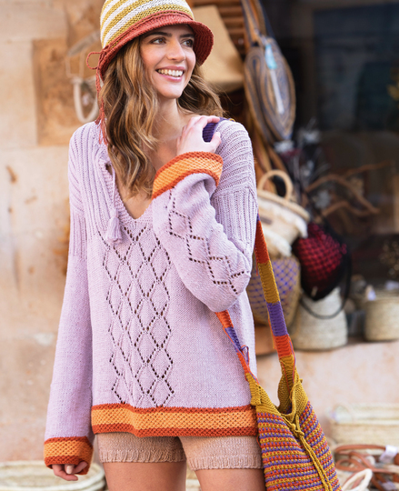 Dieser luftig-leichte Sommerpullover ist alles, was du für einen lauen Sommerabend brauchst. Aus kühlendem Garn gestrickt, ist der Pullover der perfekte Begleiter für laue Sommernächte.