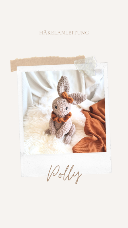 Dies ist eine bebilderte PDF Häkelanleitung AUF DEUTSCH um deinen eigenen Hasen "Polly" zu häkeln. Es ist ein ausführliches PDF-Dokument mit Bildern und ausführlichen Erklärungen.