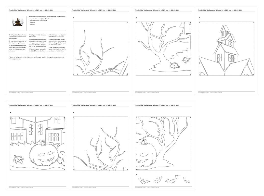 Die PDF-Datei besteht aus einer Anleitungsseite und sechs Seiten mit Vorlagenteilen in Originalgröße, die vor dem Ausschneiden des Motivs zu einer Vorlage zusammen geklebt werden (Zahlenmarkierungen helfen dabei).