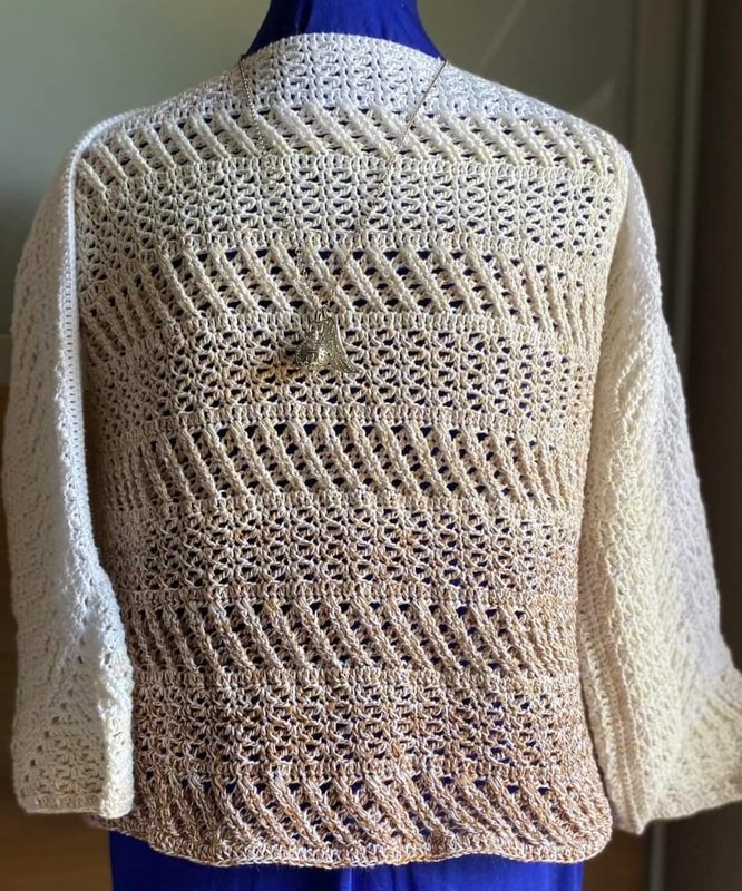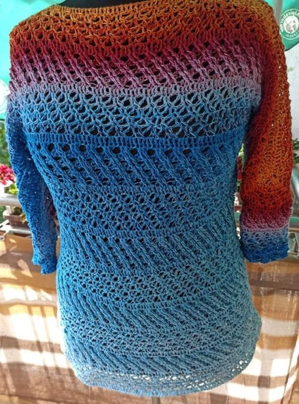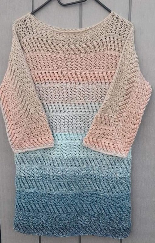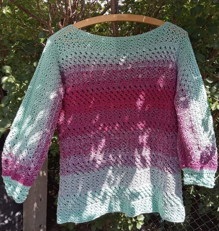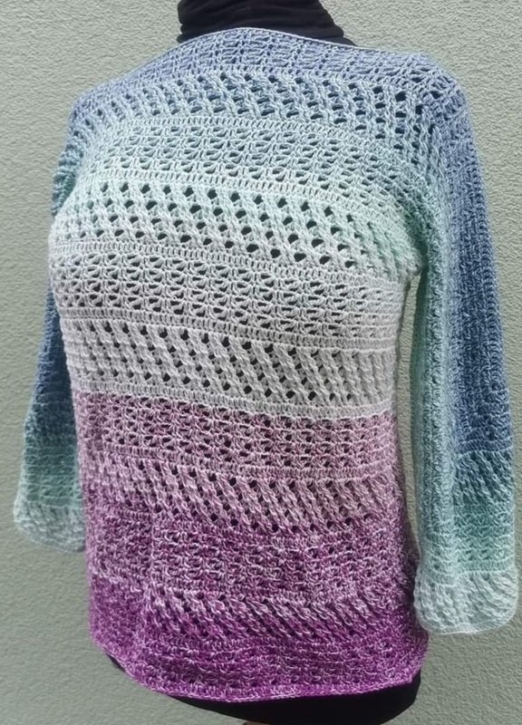 Der Pullover kann in jeder Kleidergröße gehäkelt werden.