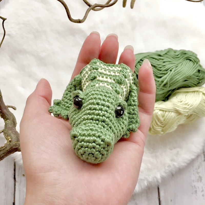 Das Krokodil Kalli wird mit Häkelnadel 2 und Baumwollgarn ca. 15,5cm lang.