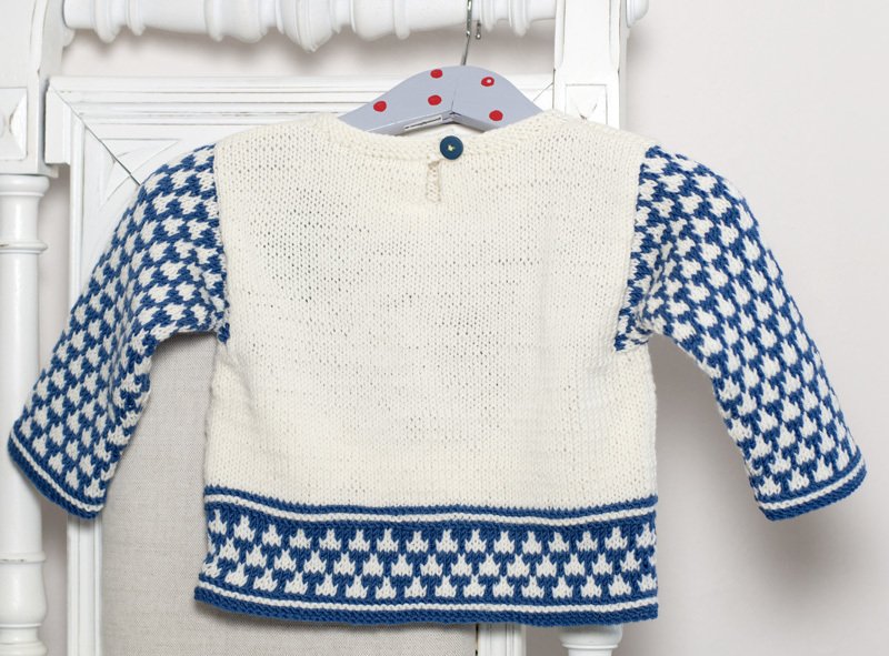 Der Pullover hat einen einfachen Schnitt und kann auch von geduldigen Anfängern gestrickt werden. Das Motiv kann entweder in Fair Isle-Technik eingestrickt oder im Nachhinein mit dem Maschenstich aufgestickt werden.