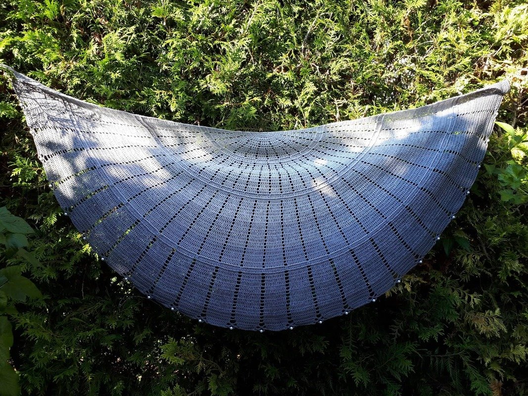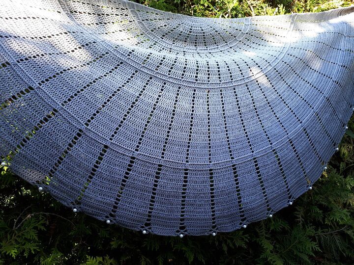 Die abgebildete Version hat mit 1200m 3fädigem Farbverlaufsgarn eine Oberkantenlänge von 180cm