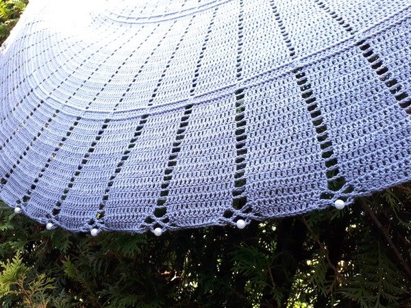 Die Muschel zum Umhängen ist ein tolles, halbrundes Schultertuch.