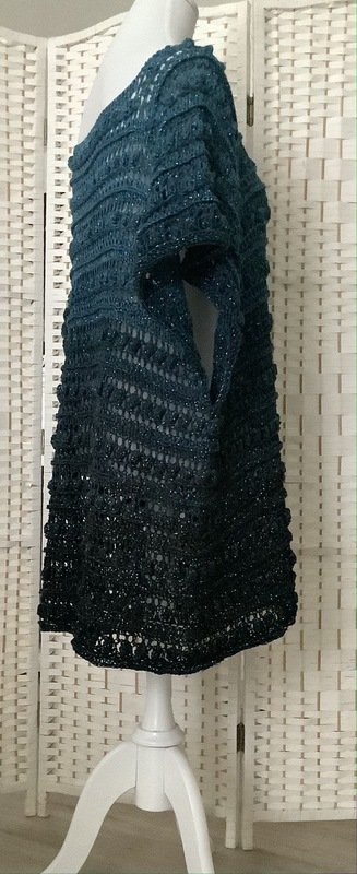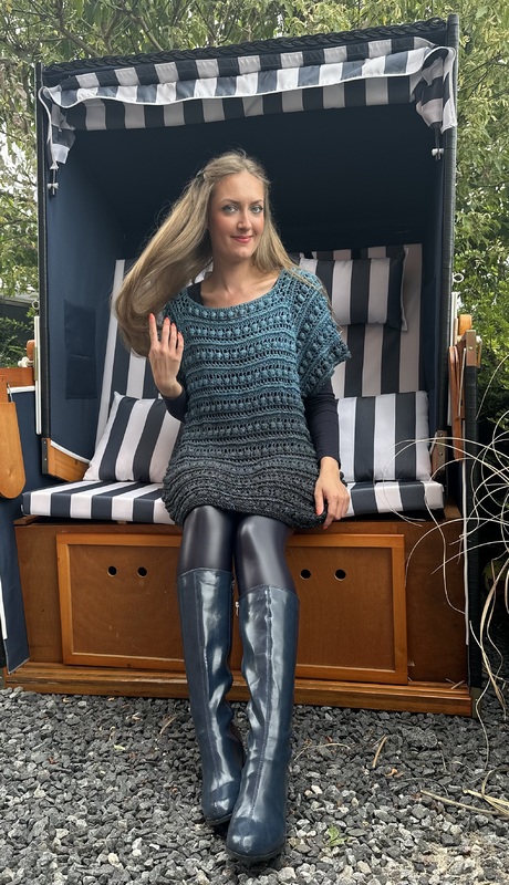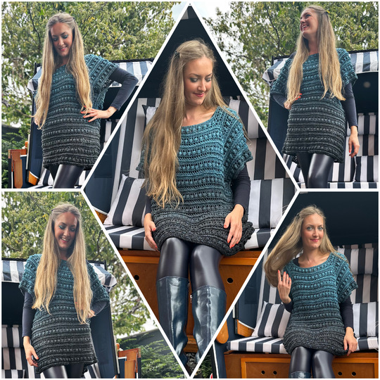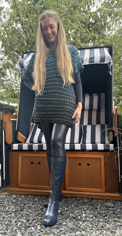 Hier bekommst Du eine Anleitung für die tolle luftig leichte, einzigartige und wunderschöne 1-Bobbel-Knubbelchen-Häkeltunika, die Oversize gestaltet ist, sodass sich jeder Figurtyp wohlfühlen kann. Wie der Name schon sagt, benötigst Du nur EINEN Bobbel, denn der Häkelpulli wird in einem Stück gehäkelt. Diese Häkeltunika ist ein echter Hingucker und kann auch als Kleid gearbeitet werden. Du kannst Dein Werk im Alltag oder eben auch zu besonderen Anlässen tragen. Die schöne Knubbelchen-Tunika ist an jede Größe anpassbar und für nahezu jedes Garn geeignet. Die Tunika kann auch figurbetont gehäkelt werden. Je nach Garnauswahl, kann man die Tunika zu jeder Jahreszeit tragen. Besonders gut eignen sich hier Farbverlaufsgarne/ Bobbel, weil sie mit einem Rutsch von der Häkelnadel hüpfen. Viel Spaß beim Nachmachen und gutes Gelingen.