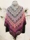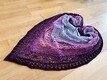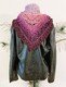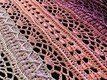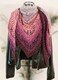 Je nach verwendeter Wolle kann die Größe etwas abweichen. Das Tuch kann beliebig vergrößert oder verkleinert werden, da sich die Reihen wiederholen.