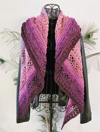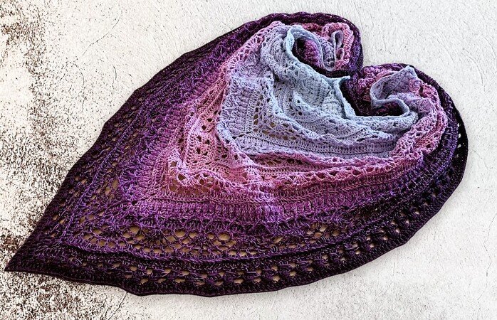 Rhoiteia ist ein wunderschönes, locker/luftiges symmetrisches Dreieckstuch, das in jeder beliebigen Größe gehäkelt werden kann, da sich die Reihen wiederholen.