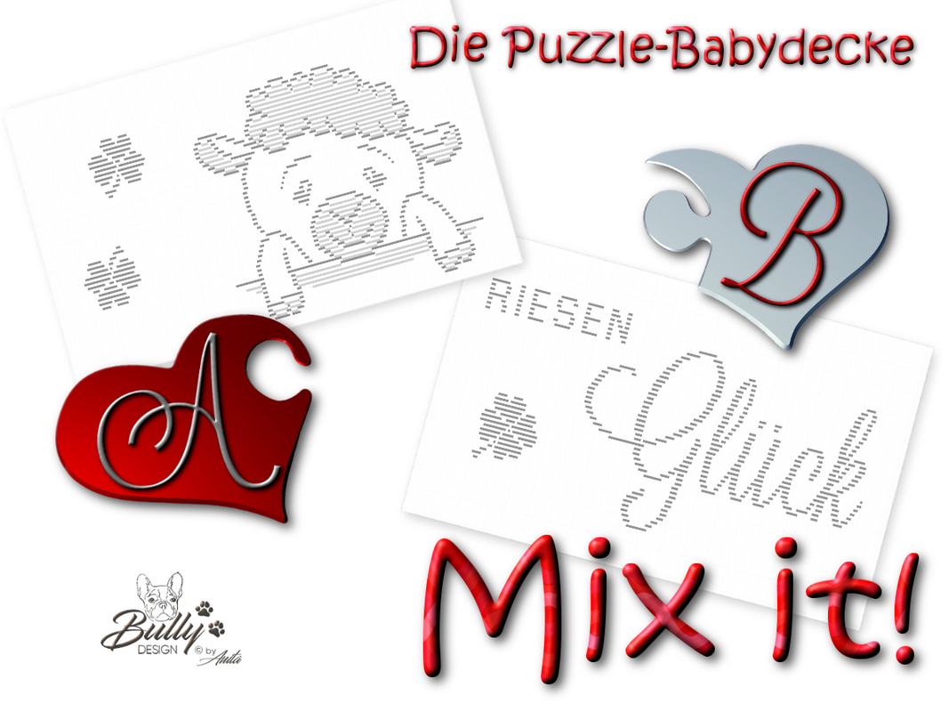 Kombiniere ein Motiv-Teil A mit einem Schriftzug-Teil B aus unserer Mix it!-Serie und bastle dir so deine ganz persönliche Babydecke!
