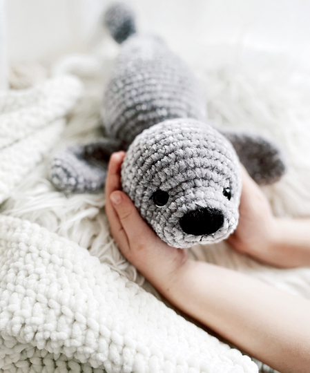 Mit Chenille Wolle wird sie ca. 30-40cm groß. Je nach Nadelstärke, Garn und Häkelstärke, kann die Größe variieren.