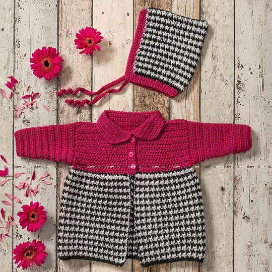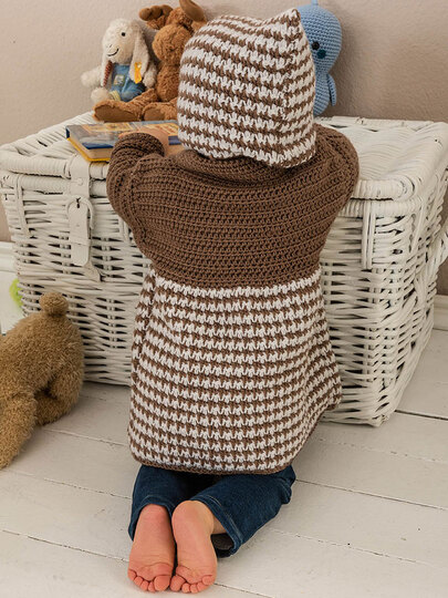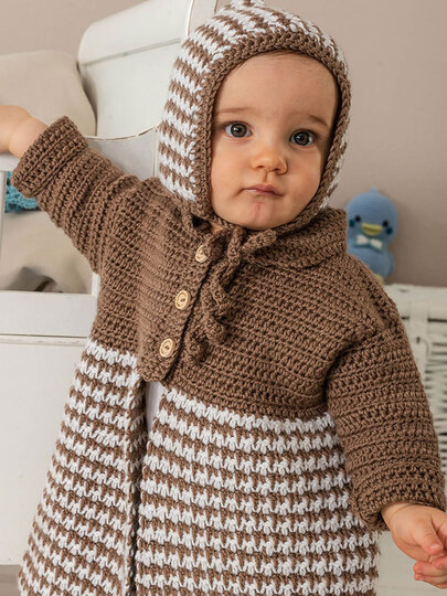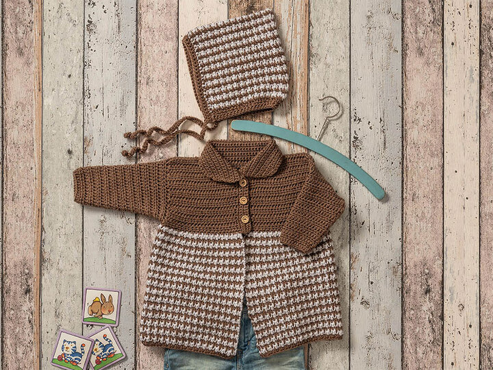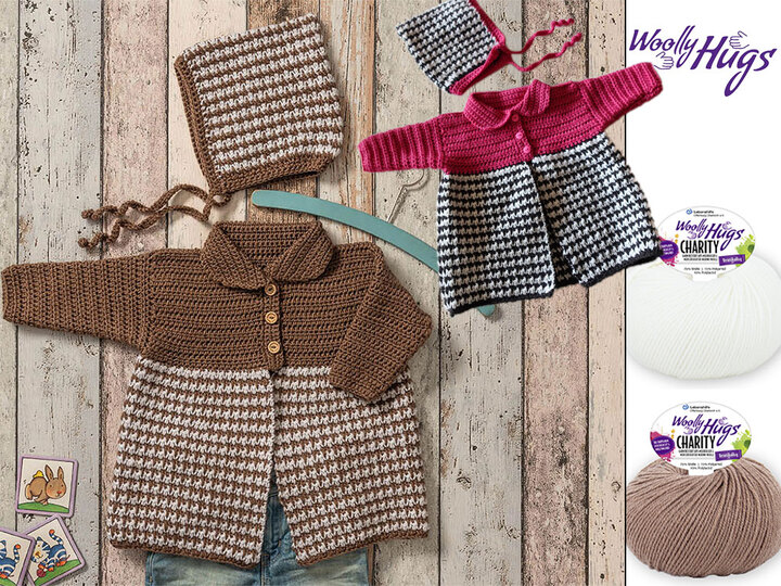 HerzschlagAlarm! Man hört schon beim Häkeln die Ah und OhRufe der lieben Verwandtschaft beim Anblick des süßen Mäntelchens, das wir in zwei Farbkombinationen vorstellen.