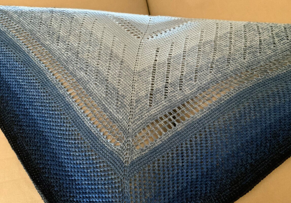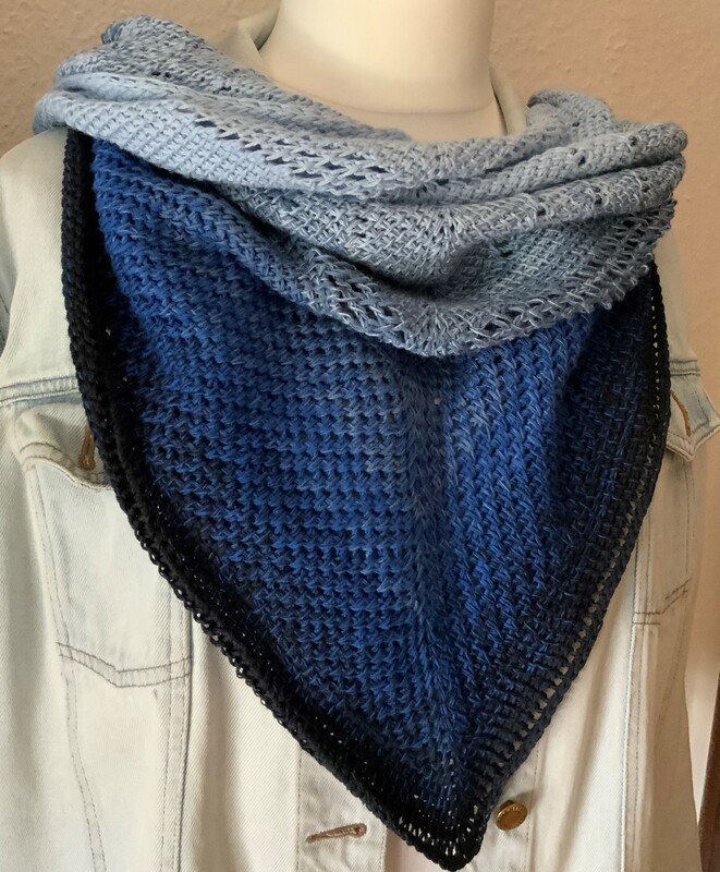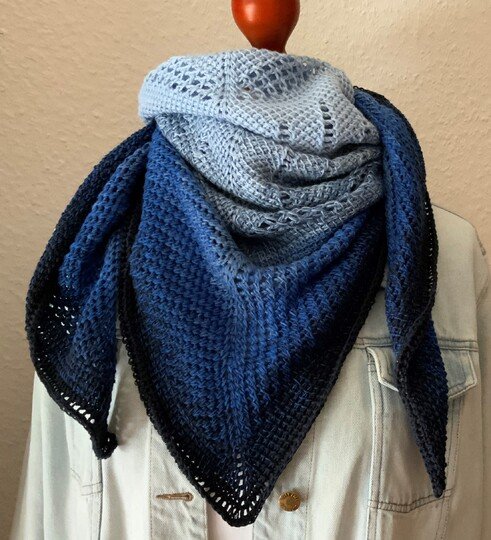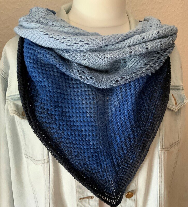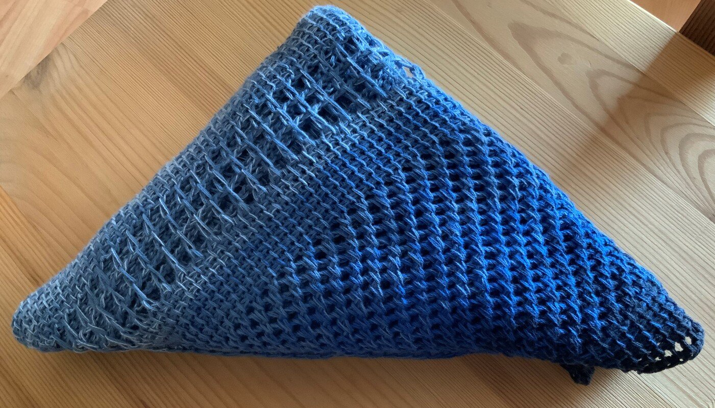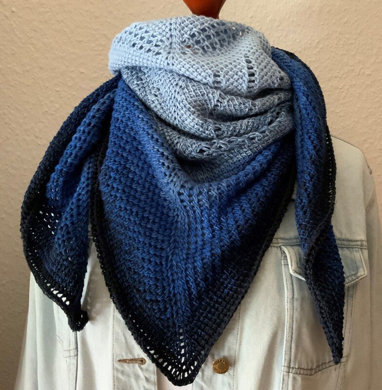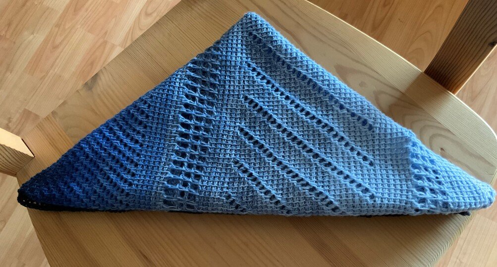 „Ailce“ ist ein symmetrisches Dreieckstuch in tunesischer Häkelei. Der Farbverlauf kommt direkt aus dem Bobbel. Richtig abwechslungsreich wird es durch die unterschiedlichen Muster der tunesischen Häkelei, die auch bei der Verwendung eines einfarbigen Garnes bestimmt gut zur Geltung kommen.