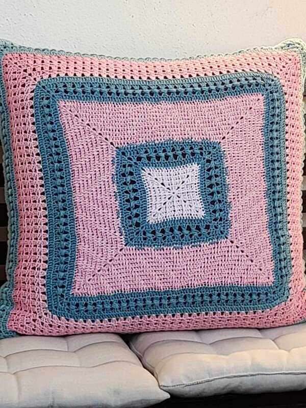 Das Kissen erfordert aber auf jeden Fall Häkelerfahrung. Dafür ist es durch die wechselnden Muster in keiner Runde langweilig.