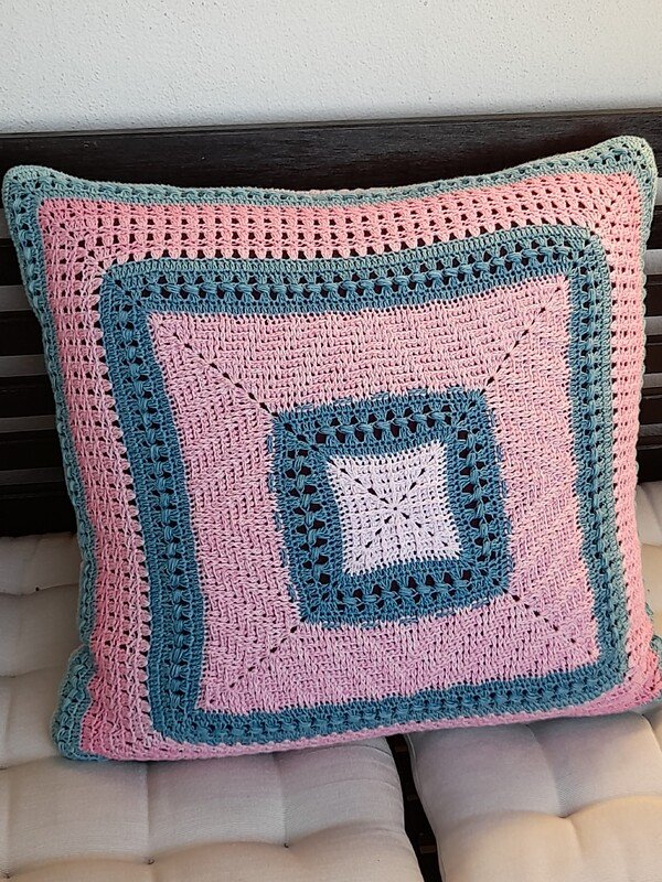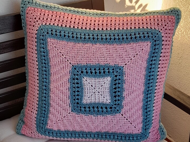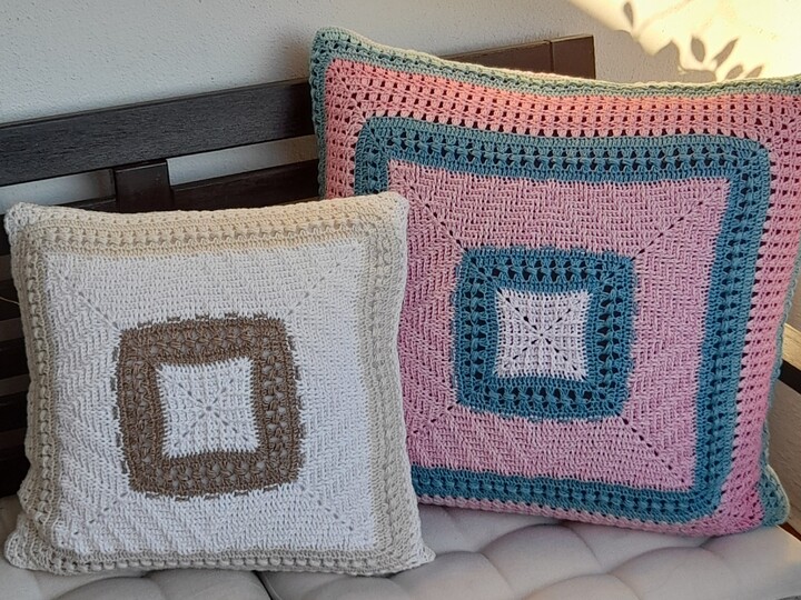 Das Kissen kann in den Größen 40x40cm und 50x50cm gearbeitet werden.