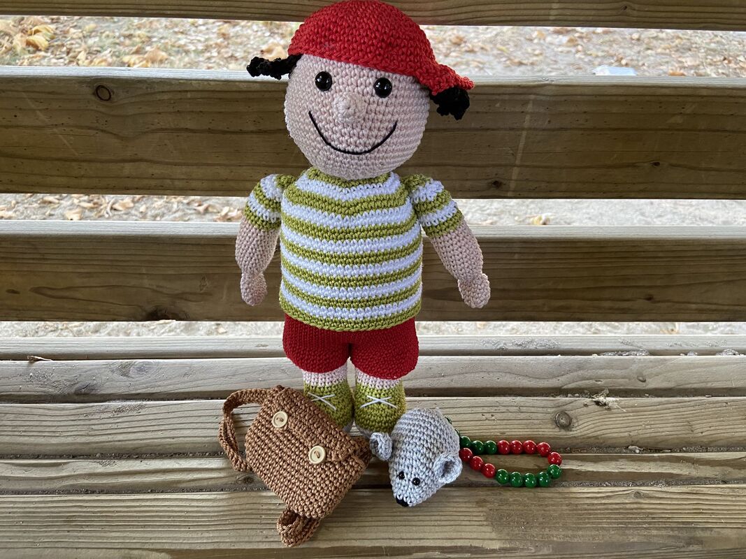 Gehäkelt mit dem angegebenen Material wird Bastian etwa 29 cm groß – perfekt zum Kuscheln, Lernen und Liebhaben.