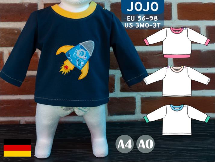 Beginne jetzt mit deinem Nähprojekt und nähe einen bequemen Pullover mit dem Schnittmuster „Jojo“ für dein Baby!