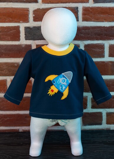 Die entzückende Raketenapplikation ist von Rock-Queen. Die Applikation ist nicht im Schnittmuster enthalten.