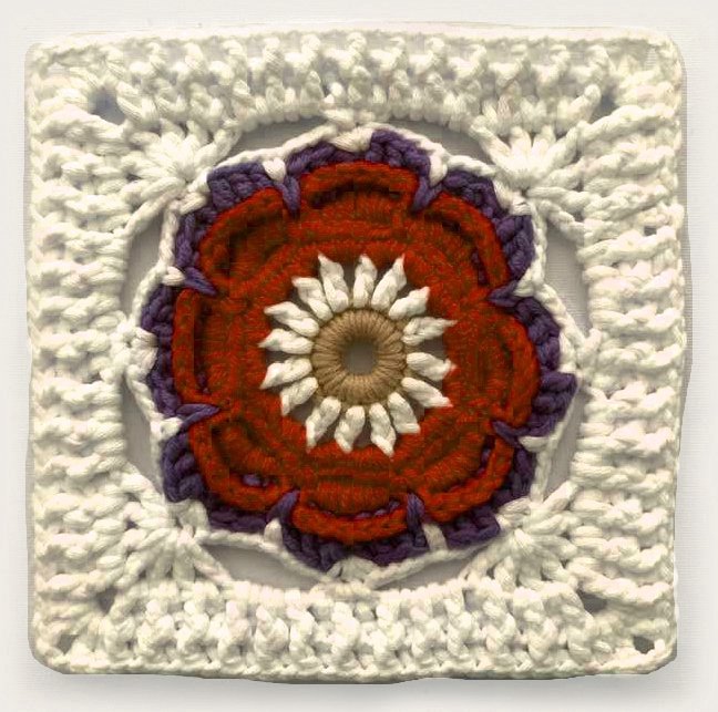 Das fertige Grannymuster hat bei 9 RUNDEN eine Seitenlänge von 17 cm
