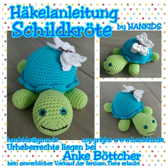 Die fertige Schildkröte ist je nach verwendeter Wolle ca 20 cm groß.