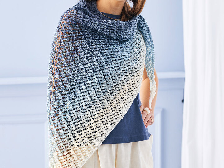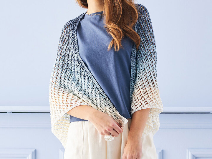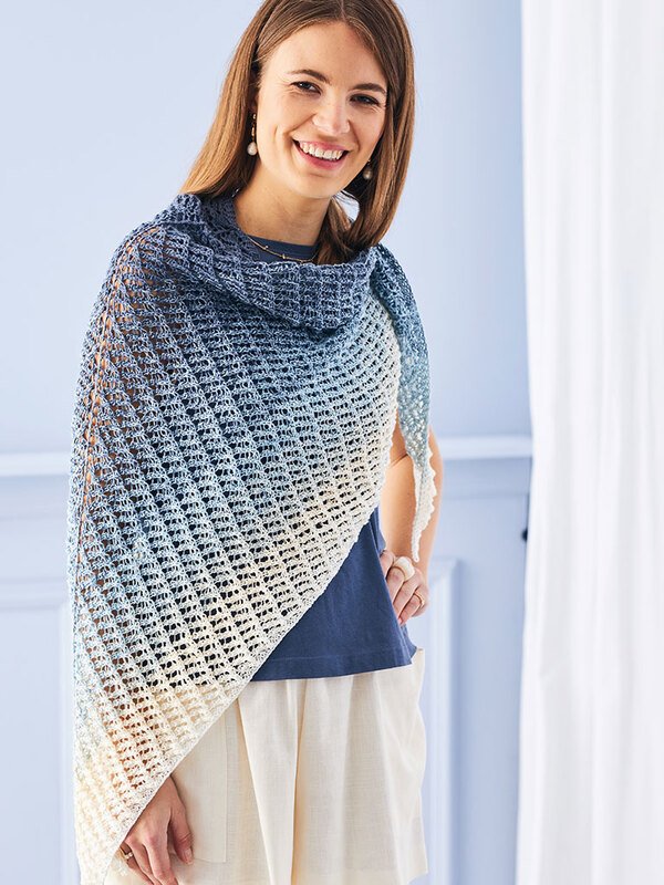Ein herrliches Muster für ein Tuch aus einem Bobbel mit einem schönen sanften Verlauf. Auf den ersten Blick sieht es durch die schön Struktur aus wie gehäkelt, aber ist es nicht. Durch Umschläge und zusammenstricken von, durch geschickt plazierte rechte und linke Maschen entsteht dieses interessante Muster. Da die Wiederholung des recht kurzen Rapports einfach zu merken sind, fluscht dieses Tuch auch leicht von der Hand.
