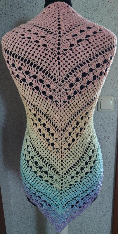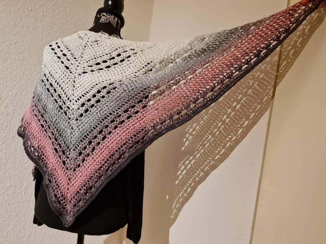 Die Anleitung zum Tuch besteht aus schriftlich ausformulierten Reihen und beinhaltet eine Häkelschrift.