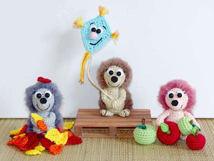In der Anleitung beschreibe ich euch folgendes: Die Igel, den Drachen, die Äpfel und die Laubblätter.