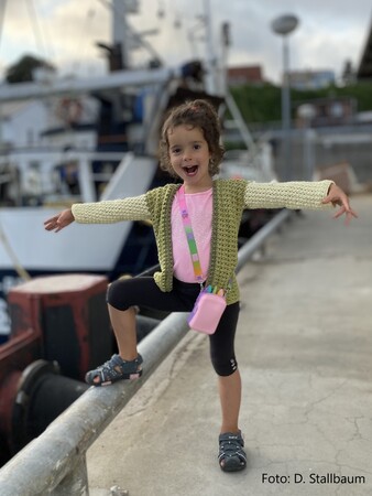 Das hier abgebildete Erwachsenen-Modell dient mit seinen Maßen lediglich als Beispiel und Orientierungshilfe. Anhand dieser Beispieljacke wird bei allen Anleitungsschritten das konkrete Vorgehen (in cm, Maschen und Mustersätzen) veranschaulicht, so dass Du Dein ganz persönliches Modell kreieren kannst.