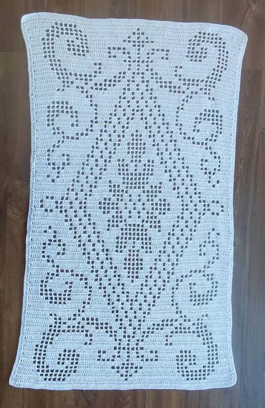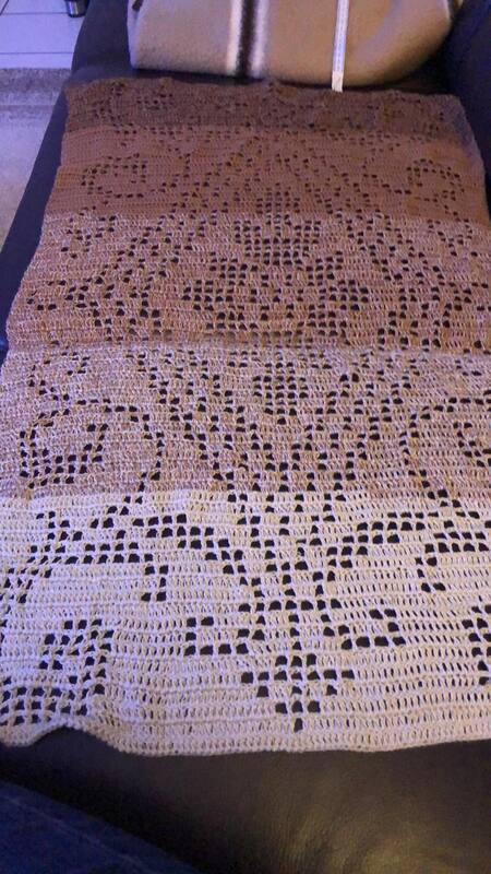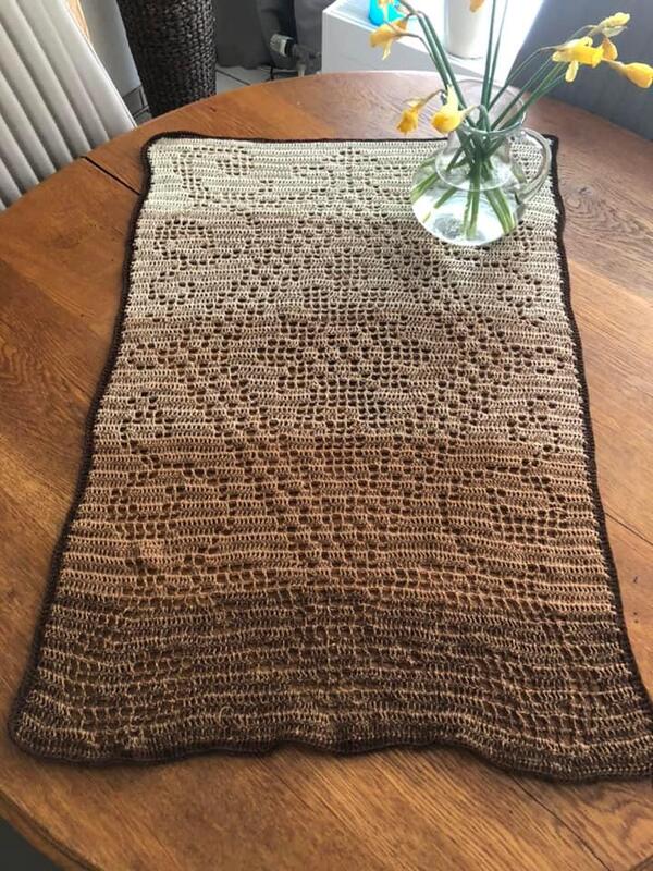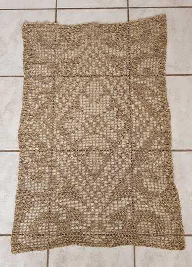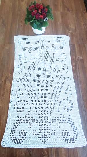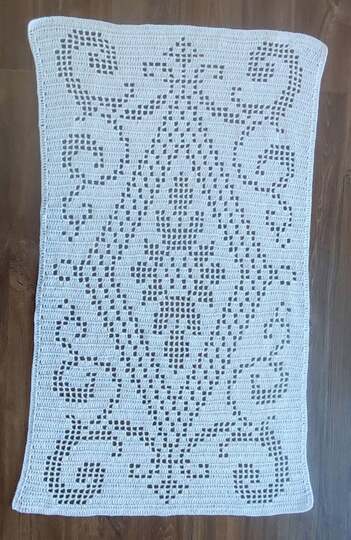 Die Größe des Läufers variiert nach dem Häkelstil, der verwendeten Nadel und der Garndicke.
