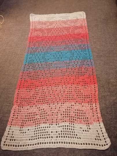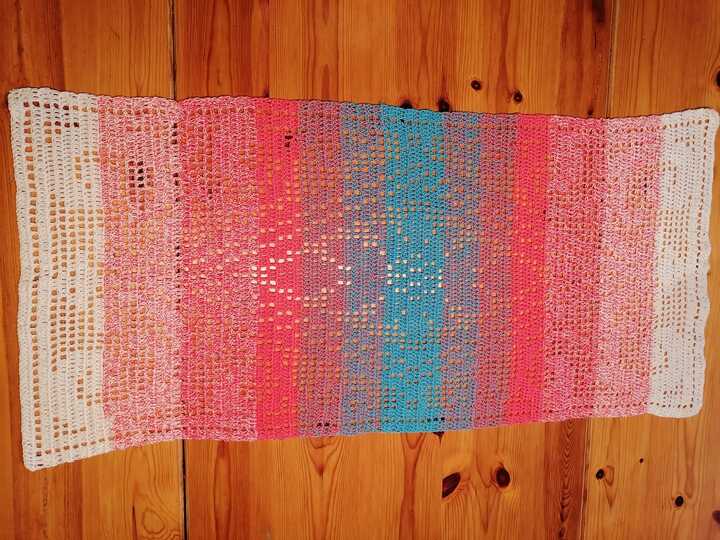 Die Tester haben Läufer von ca. 40-50 cm x 80-95 cm gehäkelt. Die unterschiedlichen Angaben sind jeweils mit einem Bild gezeigt.