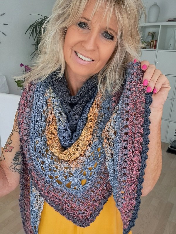 Das Tuch kann in zwei Größen gehäkelt werden.