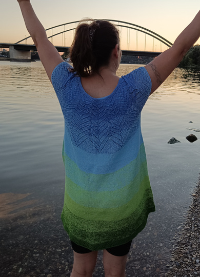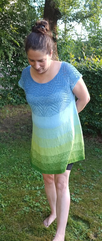 Die Tunika wird Top-Down (von oben nach unten) in einem Stück gestrickt. Größe und Länge der Tunika sind sehr flexibel, mit ein bisschen Messen und Rechnen könnt Ihr sie genau nach Euren Wünschen anfertigen.