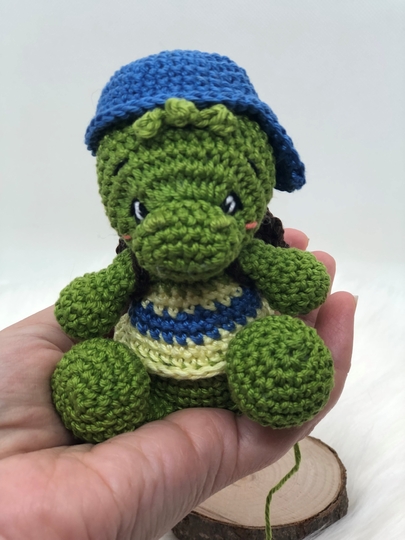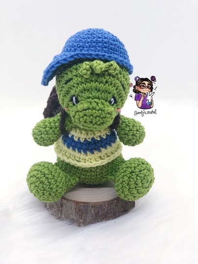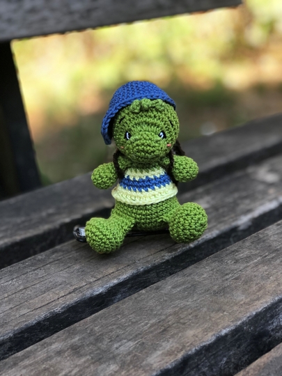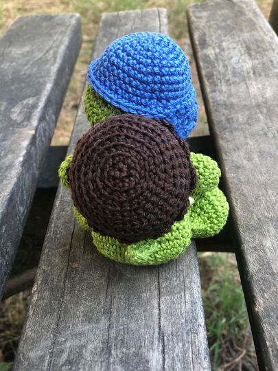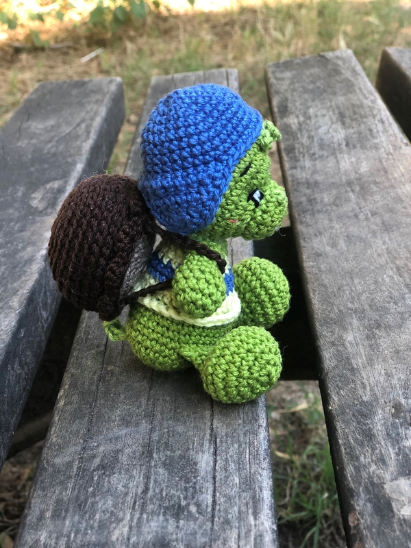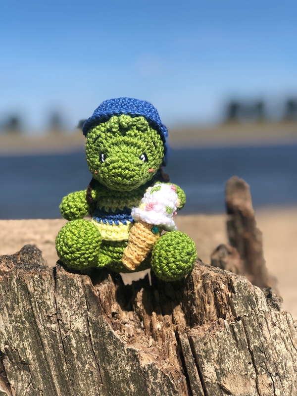 Dies ist eine digitale, deutschsprachige Häkelanleitung für eine zuckersüßen Schildkröte Percy.