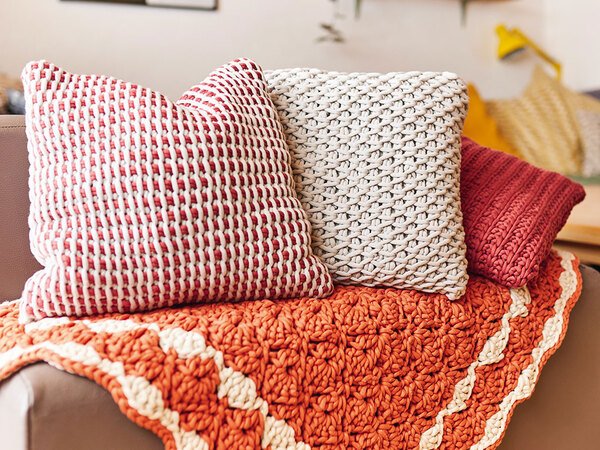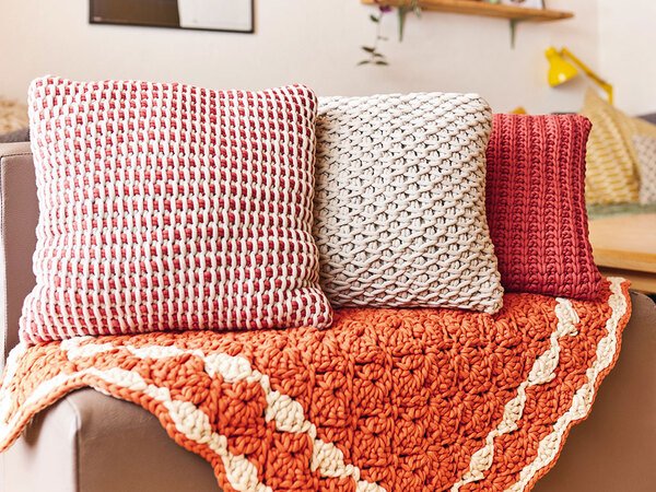 Ja, genau, alle 3 Kissenversionen in einer Anleitung. Die Decke ist eine andere Anleitung und heißt: "Teppich my Home"