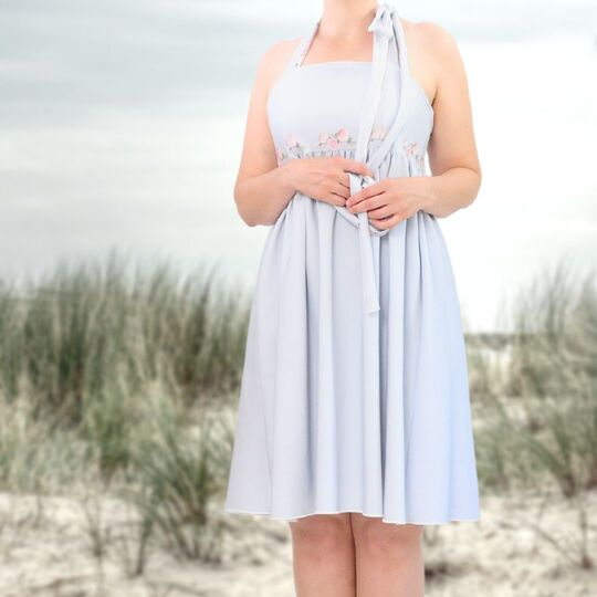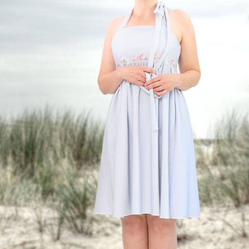 Das Oberteil ist im Empirestil gehalten, so können Schwangere das Kleid sehr gut tragen.