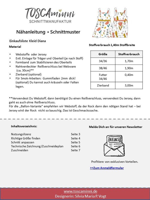 Du kannst Jersey verwenden (für das Ballonkleid empfehlen wir jedoch Webware, da der Rock einen schönen bauschigen Stand bekommt). Verwendest Du Webware, benötigst Du einen Reißverschluss. Das Oberteil wird abgefüttert.